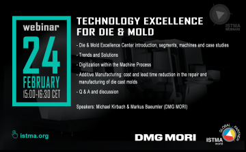Michael Kirbach and Markus Baeumler from DMG MORI will be the invited speakers on February 24th, from 3 pm to 4.30 pm – Central European Time (CET), on the webinar "Technology Excellence for Die & Mold", hosted by ISTMA.
