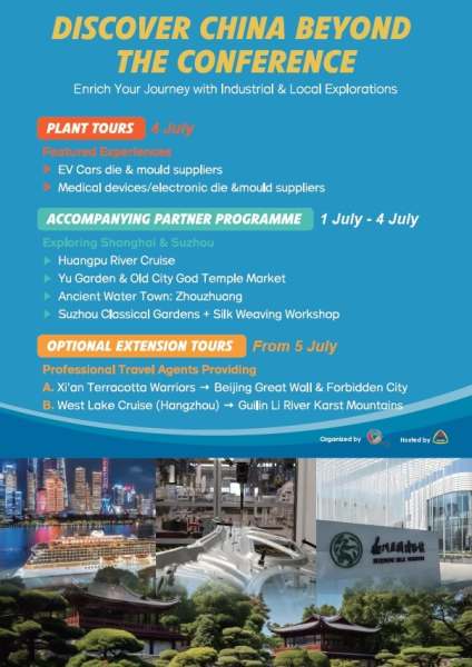 Under the central theme of "Connectivity, Innovation, Complementation, Mutual Benefit" the conference aims to maximize international industrial complementarity, address common industry needs, and foster impactful cooperation. The CDMIA, established in 1984 and the sole national industry association for the country's die & mould sector, will proudly host the event, underscoring China's critical role as the world's largest market for die & mould consumption. In 2024, China's output reached an impressive RMB 363.3 billion, with exports totaling USD 8.686 billion.